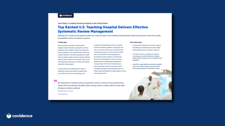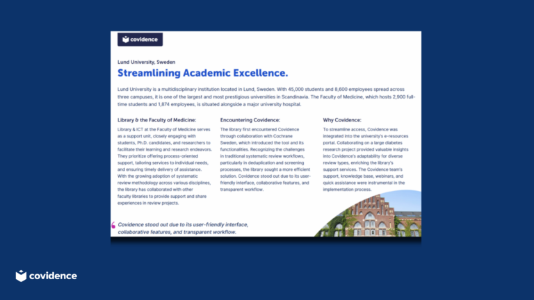 Join over 450 leading institutions accelerating evidence production with Covidence.